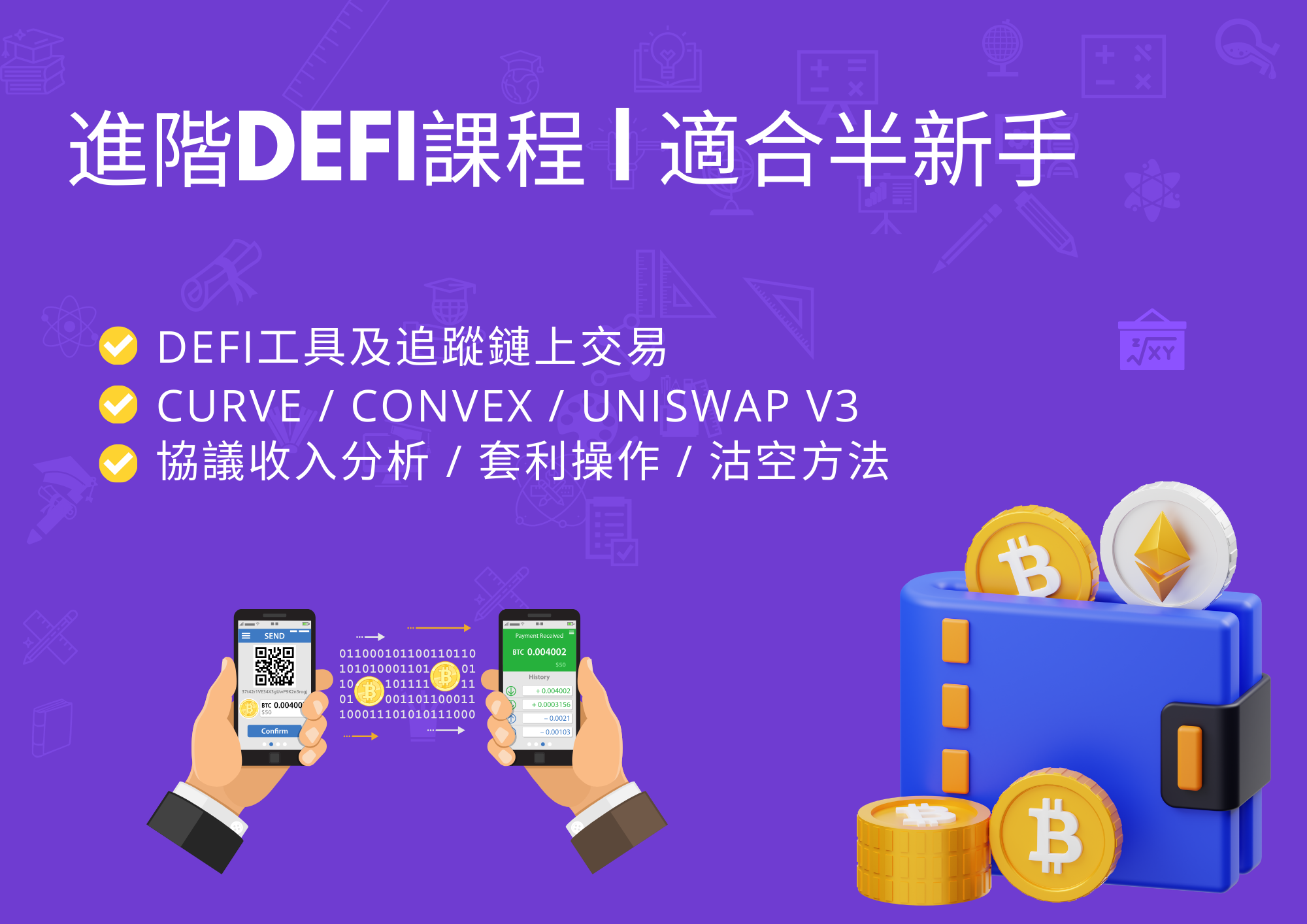同時示範DeFi 操作技巧、細節及風險管理,此加密貨幣網上課程將附以例子解說,詳情請參考以下課程內容細節.
